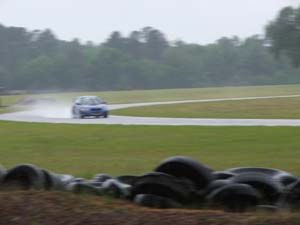 From a theological perspective, the purpose of One Lap 2005 might be to demonstrate to we mortals that Hell might not be hot and dry. It just might be cold and wet. It was so cold and wet Thursday that the NASCAR boys a hundred or so miles further north in Darlington called off practice. But not One Lap. A wet track always stirs the pot and the heavy rain put two inches of water on the track in places. Dennis and the Coupe did well considering the water, but not finish in the top ten in either event. However, tthe car just ahead of the overall standings, the No 12 Corvette ZR1, finished way down. Our team is now in ninth overall and fifth in SSGT1 Big Bore. The rain helped for a change. After the first event, the wet skid pad, they were in 47th spot. It has been an amazing charge back into the top 10.